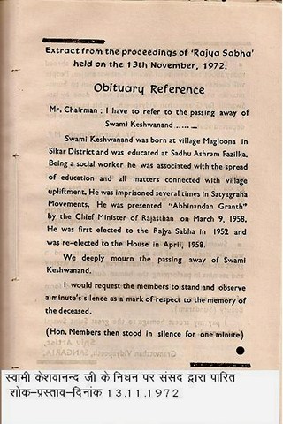 राजस्थान के अभावग्रस्त रेगिस्तानी क्षेत्र में स्थित सीकर जिले के एक छोटे से गांव मगलूणा में बीरमा (जो बाद में स्वामी केशवानन्द के नाम से प्रसिद्ध हुए) का जन्म दिसम्बर, 1883 (पौष संवत् 1940) में एक साधारण किसान-ढाका जाट परिवार में हुआ। बीरमा के पिता ठाकरसी ढाका उसके जन्म के थोडे़ समय बाद ही खेती का काम छोड़कर अपनी पत्नी सारां और इकलौते बच्चे को लेकर बीकानेर राज्य के रतनगढ कस्बे में जा बसे थे और अपने ऊँट पर सवारियां और सामान ढोने के धन्धे से गुजारा करने लगे थे। बीरमा चार वर्ष का ही था कि उसके सिर से बाप का साया उठ गया। बीरमा की माता उसे लेकर रेगिस्तानी क्षेत्र के किसी गांव में अपनी मौसी के पास चली गई और वहां कुछ गौएं पालकर गुजारा करने लगी। रेगिस्तानी क्षेत्र में प्रायः अकाल की स्थिति बनने के कारण परिवार को अपने पशुधन के साथ गांव-गांव भटकना पड़ा। उस समय का दीन-हीन ग्रामीण कृषक समाज सामन्तों, राजाओं-नवाबों और विदेशी शासकों की तिहरी गुलामी में दबा हुआ था। more..